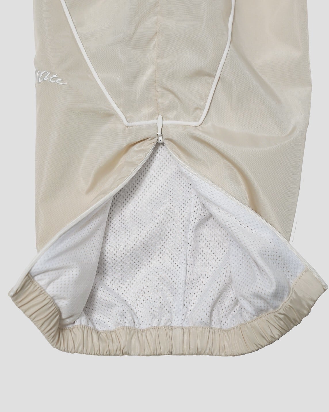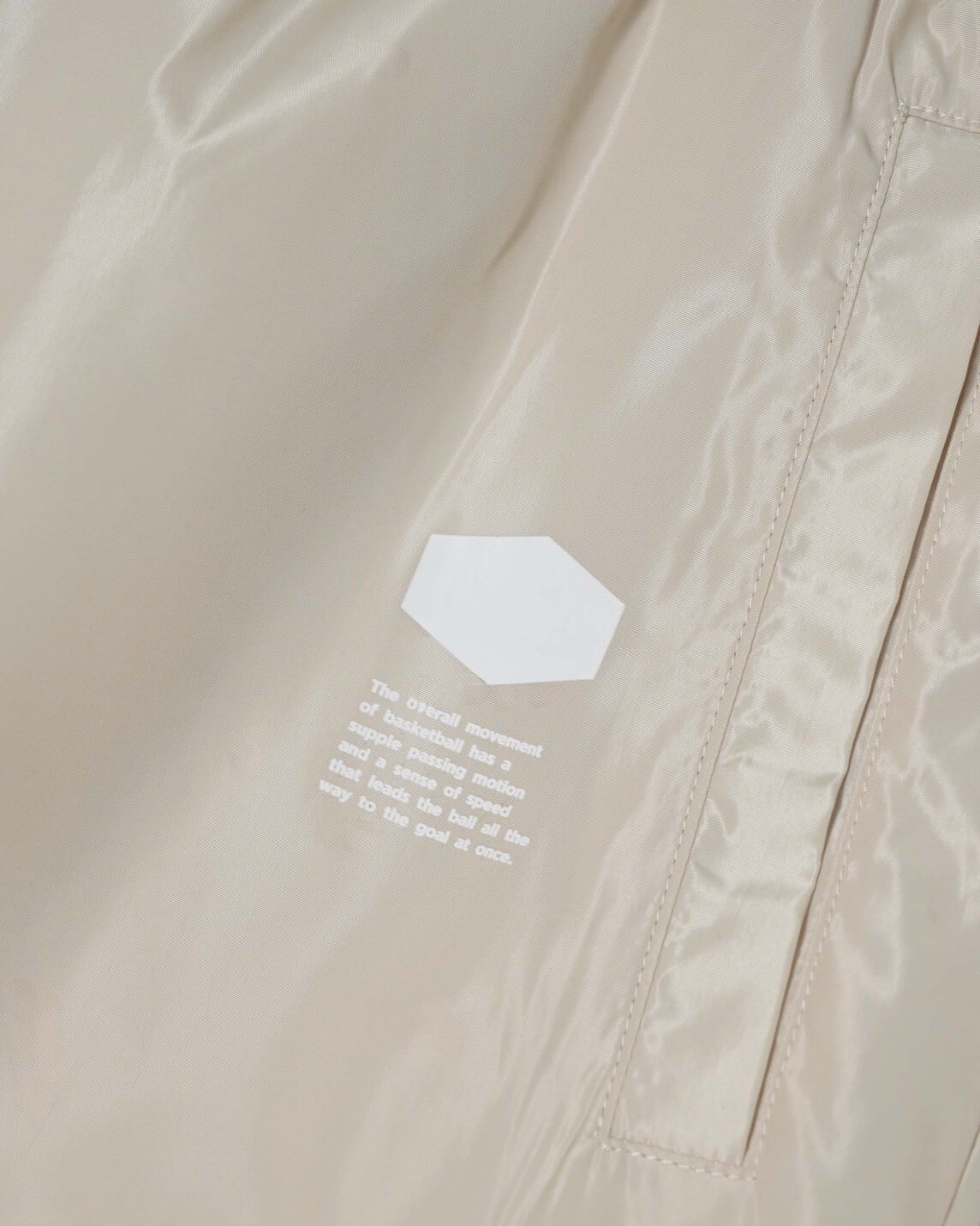 裾の内側にはジップ仕様を採用し、バスケットボールシューズを履いたままでもスムーズな脱ぎ着が可能な設計にしています。使用しているナイロン素材は、防風性・速乾性に優れ、非常に軽量かつ高強度。激しい動きにも耐えるタフな構造で、スポーツからアクティブな日常まで幅広く対応します。また、裏地にはメッシュ素材は肌離れの良さと快適な着用感を実現しました。